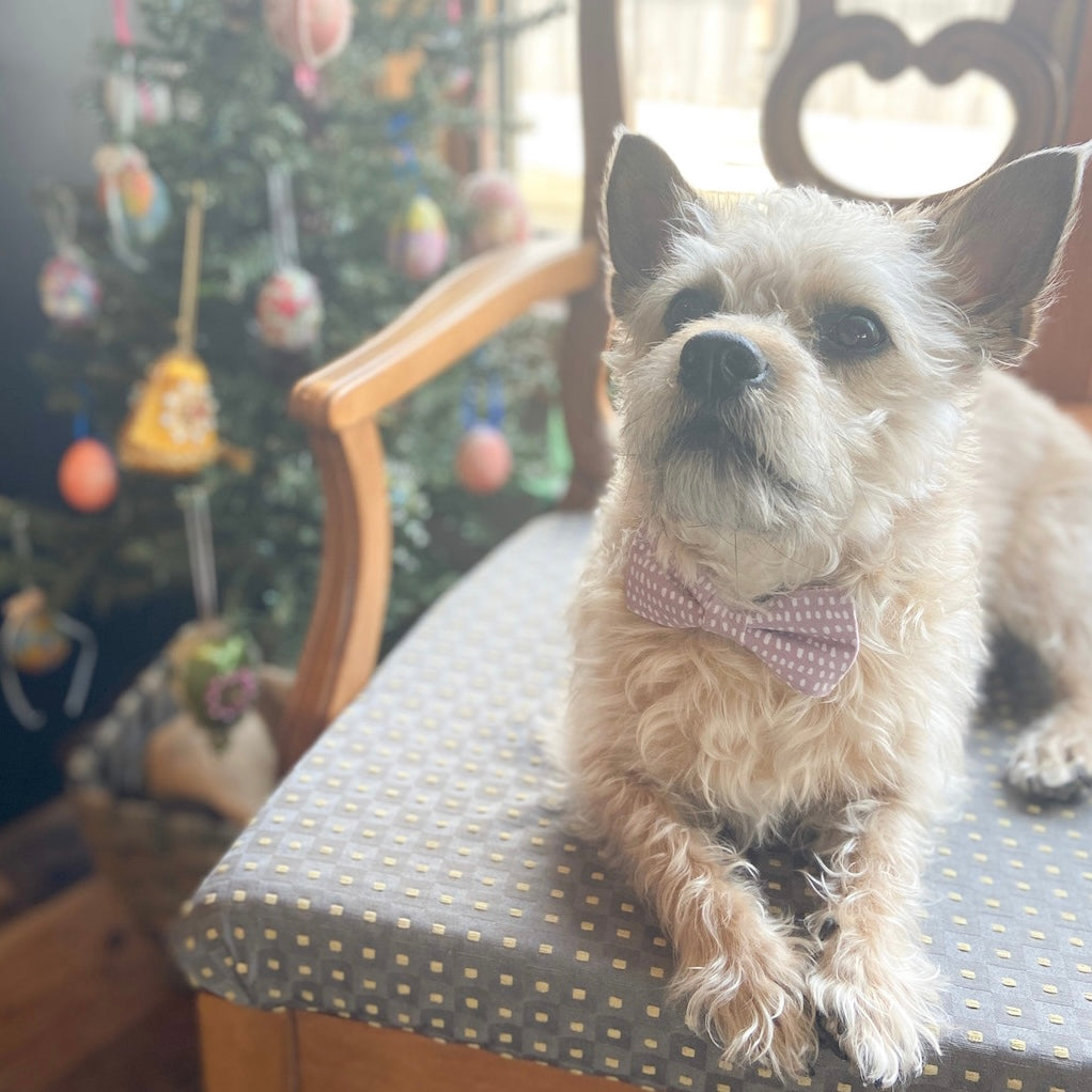 Once upon a time, not long ago, there was a pup named Ace who’s collar was anything but poppin’. In fact, it was straight droopin’. This was because his poor little bow tie was held on by only velcro! Not to mention it was itchier than fleas! Ace’s mom searched high and low for the best bow ties and turns out, almost ALL the bow ties were droopin’.