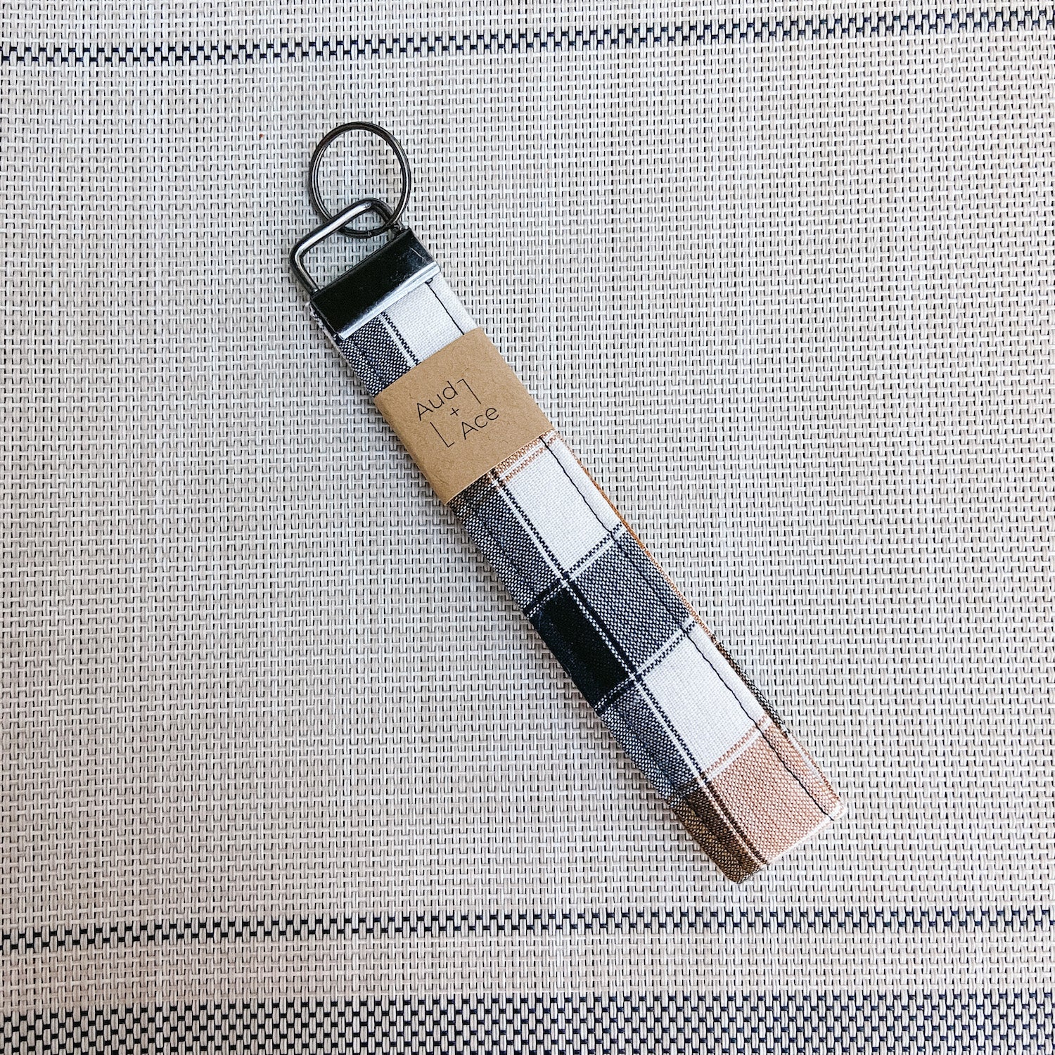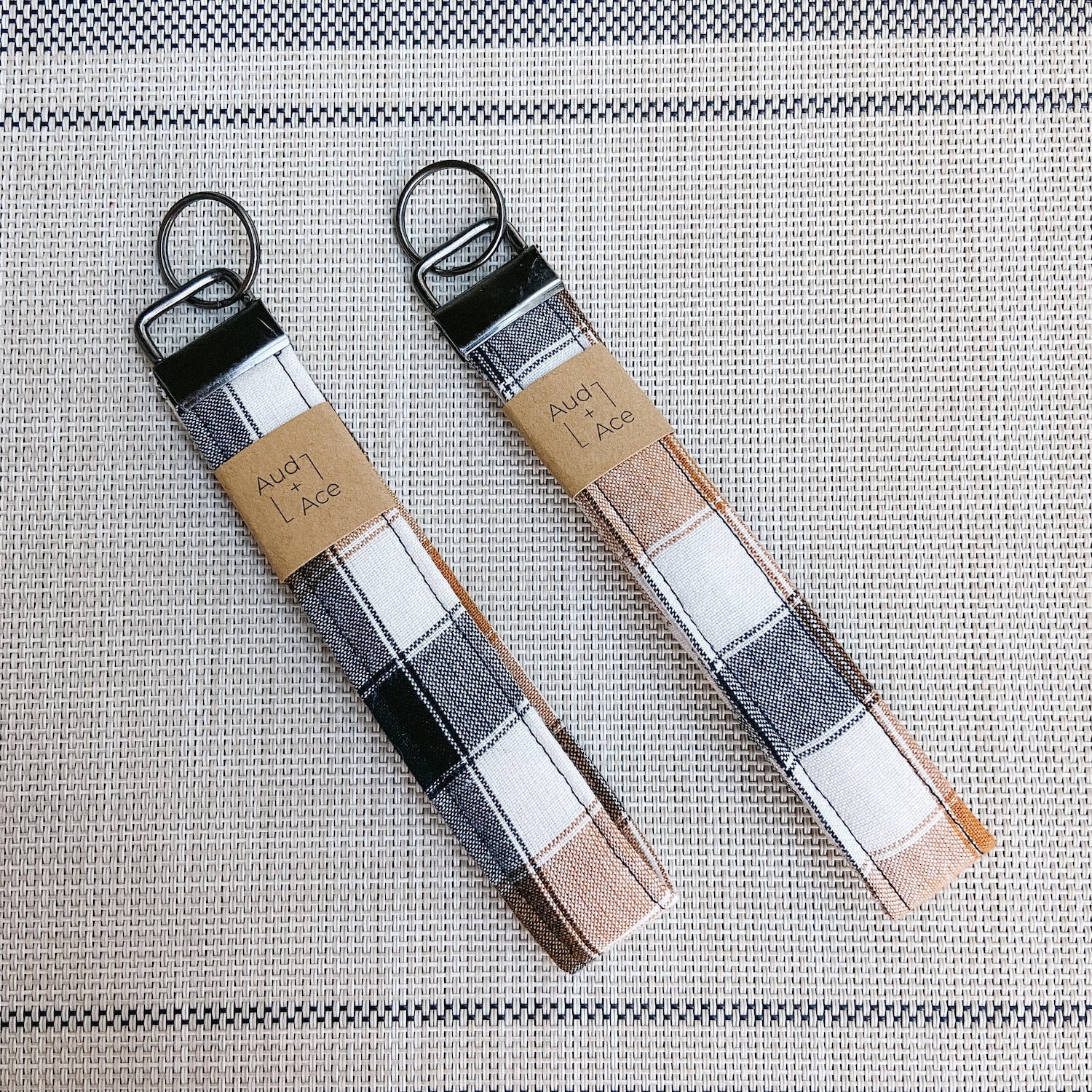 This Fall Plaid Key Chain comes with dark silver hardware.