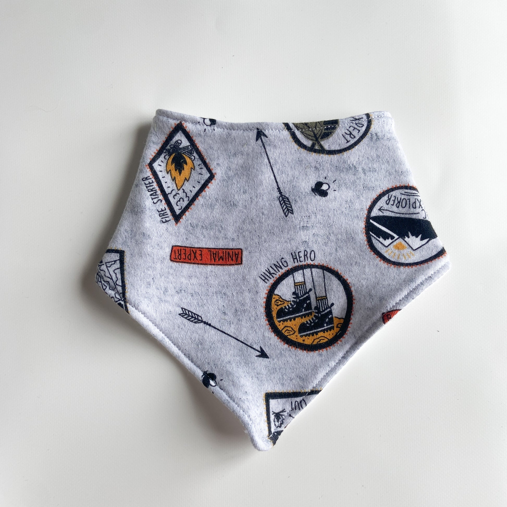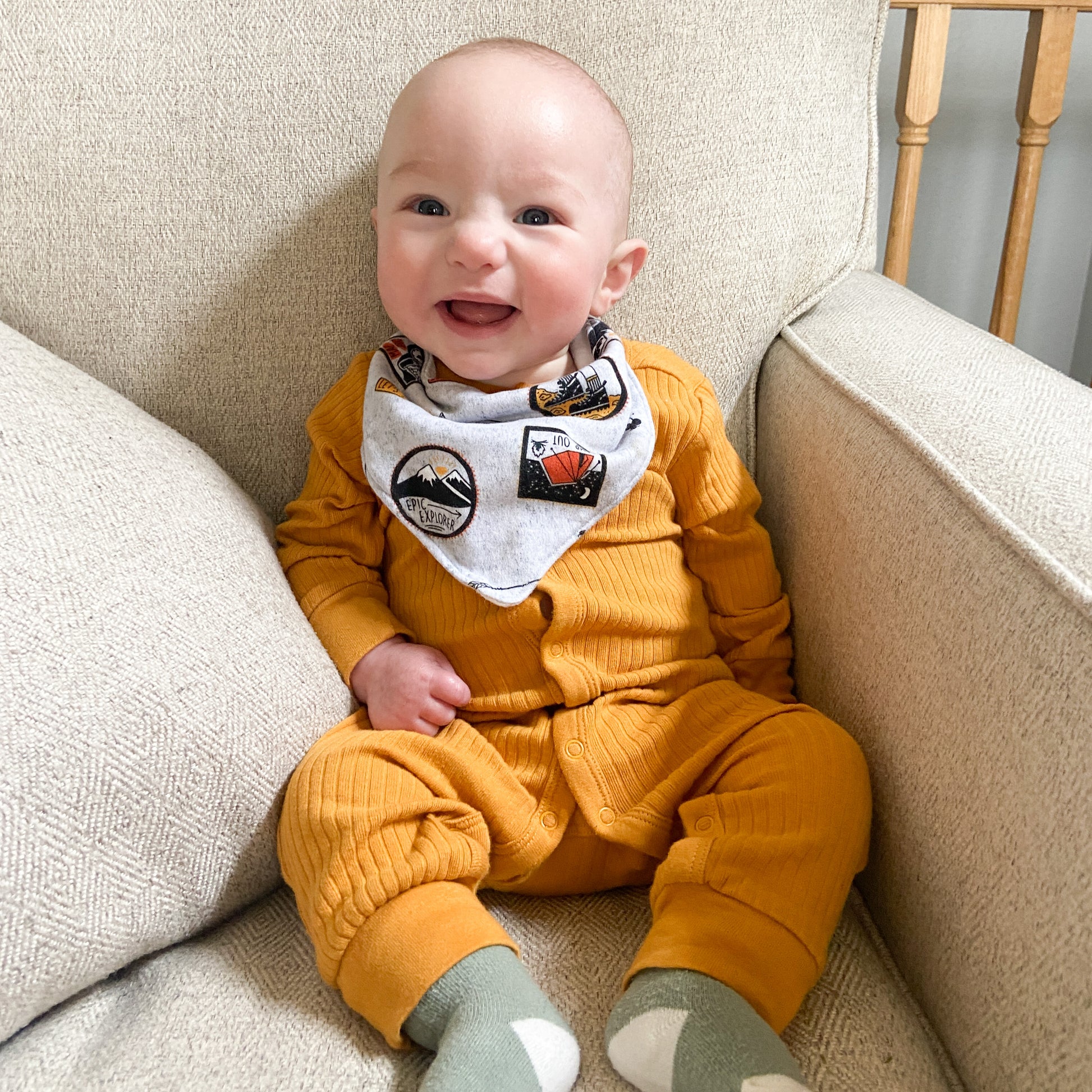 Bibs are made with a double layer of fabric for those droolin' kiddos and two cam snaps for adjustable sizing.